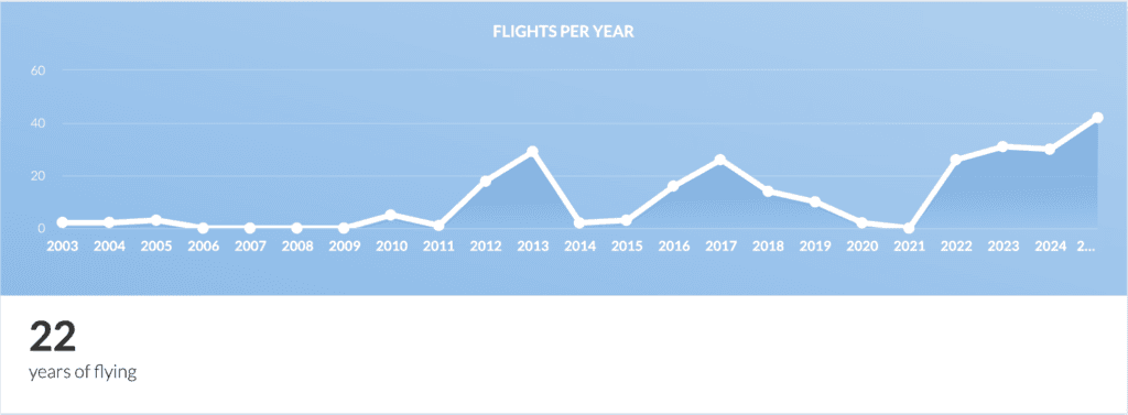 2022-től a robotika, AI, minden együtt újra felpörgette a repülések számát. Ez idén egészen odáig ment, hogy rekordszámú, 42 repülést könyveltem 2025-re. Ebben benne van az USA IVLP kiruccanástól kezdve minden, ami ehhez hozzátett.